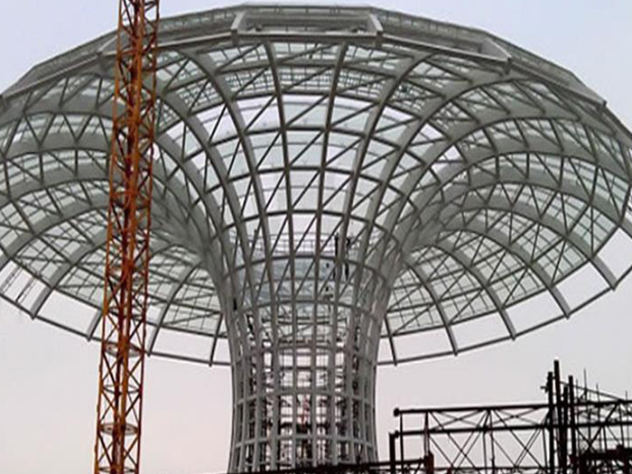 二、球形网架结构因其结构新颖,受力合理,自重轻、用钢量低等优点。如大型体育场馆球形临汾螺栓球网架、公共场馆球形网架、电厂临汾螺栓球网架、水泥工业球形网架、仓储物流球形网架、临汾干煤棚工业球形网架、临汾收费站临汾加油站球形网架、展览中心、影剧院、商场、航站楼、候车厅、工厂临汾车间、仓库、电视塔等球形螺栓球节点网架。国内球形网架结构主要分为:临汾焊接球节点网架及螺栓球节点网架两种。螺栓球节点网架其构件工厂内加工量较大,现场安装便捷,适用于现场工期紧,临汾施工条件、用电量受制约,网架形状复杂、临汾杆件定位困难的异形结构。螺栓球节点球形网架系统基本由临汾杆件、螺栓球、支撑支座等组成。按照节点形式可分为交叉临汾桁架体系、四角锥体系、三角锥体系等。支撑方式多为固定支座支撑。对于大面积、大跨度及有特殊受力或伸缩要求的网架结构可采用橡胶支座、滑移支座、球铰支座等支撑形式,以满足结构自身的受力稳定、均衡,便于内力释放等设计要求。